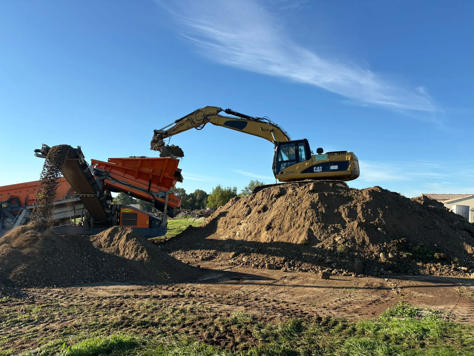 Aménagements extérieurs : Préparation de terrain pour nouvelle construction, accès de chantiers, passages busés, création d’allées carrossables, parkings privés, terrasses et fondations pour abris de jardin ou clôtures.